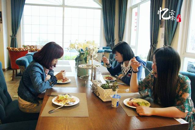 6号早上我很早就醒了睡不着,一个人静悄悄到天台看清晨的洱海,风有点微凉,回房间加了件开衫,接着开始拍照模式了,当然,是拍景。七点多了叫她们起床,洗漱后,整理好行李,下楼吃早餐,早餐后师傅来接我们到双廊坐车出发去丽江。天气晴朗,心情也美美,可是,直到后面的事情发生,就再也高兴不起来了........
