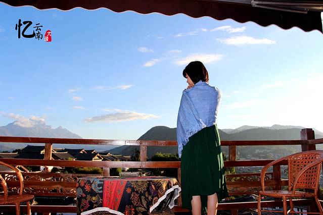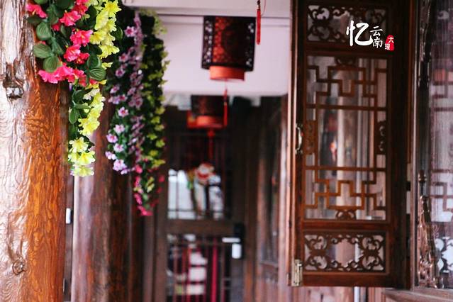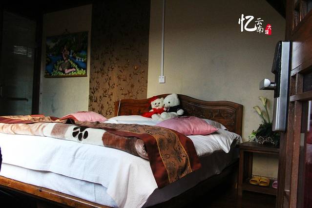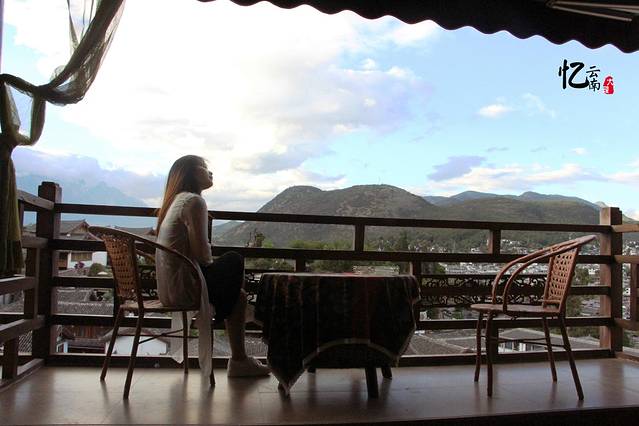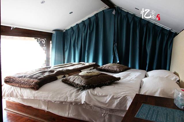 客栈内景。我们就住上了楼梯的那间房间,是复式的,上下两层两张床,去哪儿订的,活动价300/晚。很划算。老板人很好,帮我们接行李,三个行李箱一个背包爬狮子山也挺累的,下午逛完束河回来找不到去客栈的路,他又下来接我们。