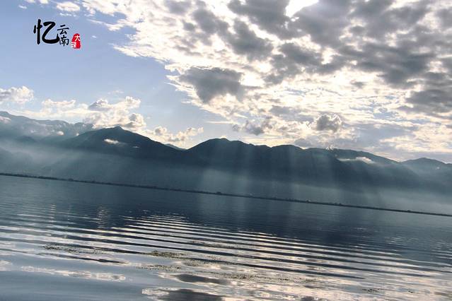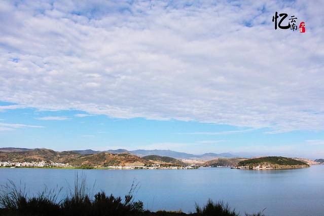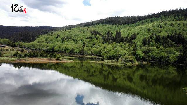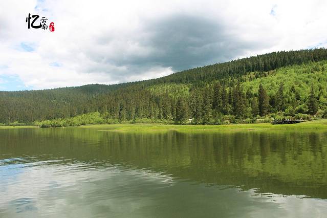 阴天,云层很厚,如果天晴,湛蓝的天空倒影在湖面上,肯定更美。