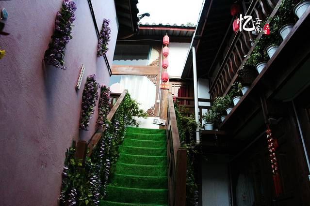 暖暖客栈,也颇有名气。绿荫台阶,很漂亮。