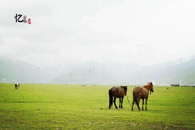 草原挺大的,遍地小野花,烟雨朦胧美。