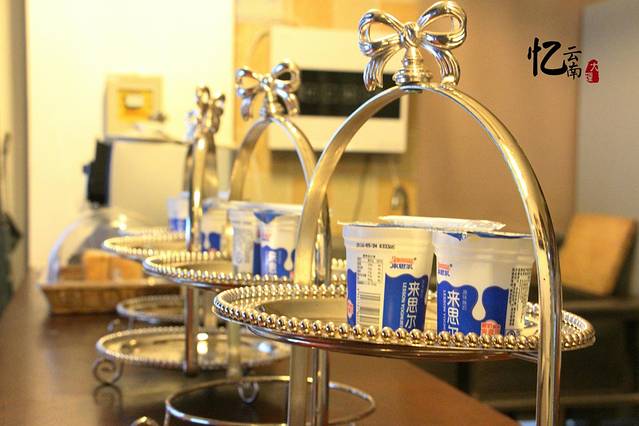 酒店1楼餐厅,自助早餐,早餐很丰富,水果,热牛奶,酸奶,各种早点。