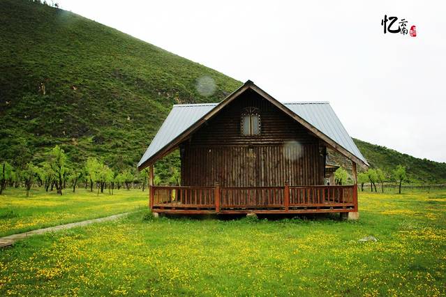 整理好行李下楼吃早餐,8点集合出发,先到龟山公园,参观了香格里拉博物馆,下雨了有点冷,出来后赶紧回到车上,同行伙伴都去推转经筒了。大概一个小时候后,出发去小中甸花海,高山杜鹃已经谢了,那时候满地开的都是黄色的狼毒花,狼毒花到了9-10月份就会变成红色的。也很美。因为下雨,大概就停车5分钟,下来拍了几张照片就离开了。