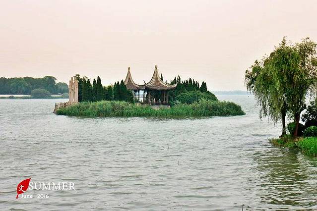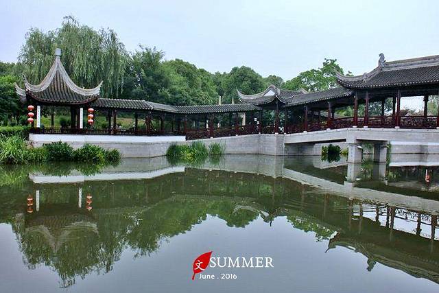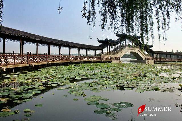甪直还有一个江南文化园,是近些年新建的。不用收门票。里面的面积很大,大型的广场,围绕一个大湖,建了很多廊桥,完全改变了古镇狭街窄巷的模样。感觉如果遇上节假日游人很多的话,这里应该是一个疏散人口的好地方.