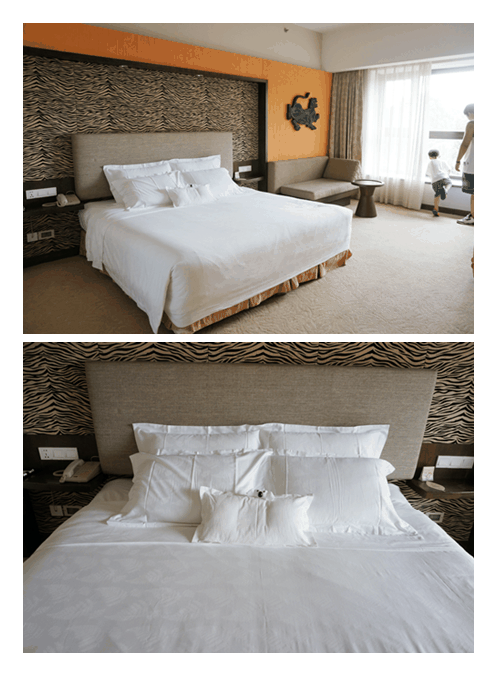 酒店除了地理优势之外,最大的特色就是拥有放养白虎及火烈鸟的中庭花园,所以酒店的房型设计也都围绕着这白虎园和鸟趣园,比如,在白虎房里可以俯瞰白虎,而鸟趣房则可以看中庭里闲庭信步的火烈鸟。