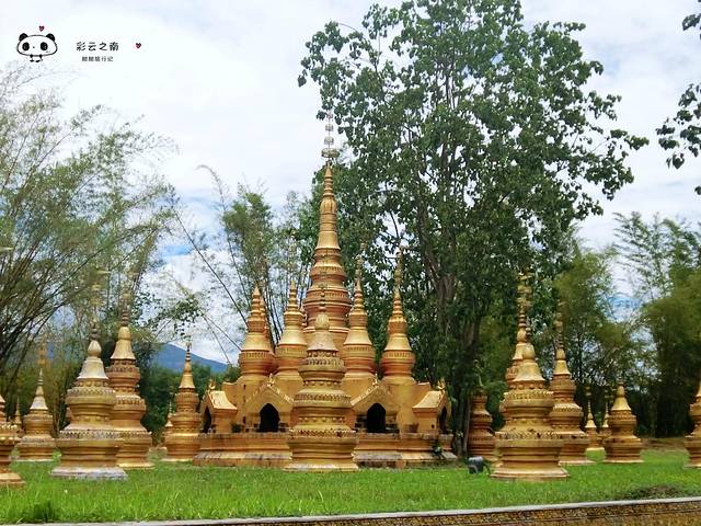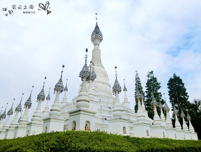 雄伟的白塔叫“波中塔”,是仿德宏州盈江的允燕塔建造的。40座小塔簇拥着高高的主塔,365个风铃声悦耳动听。