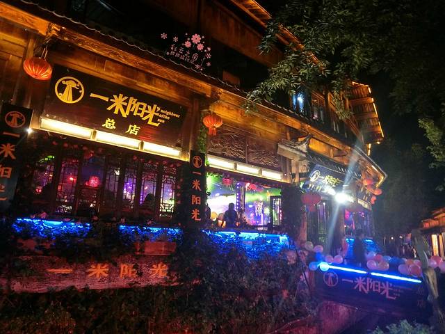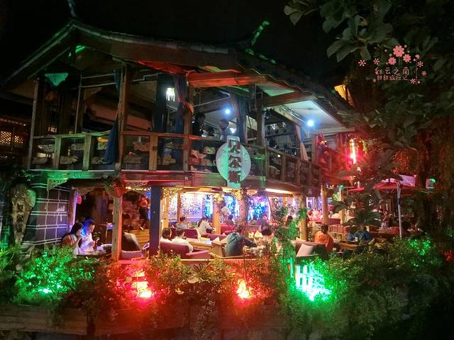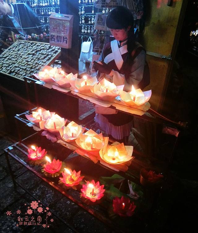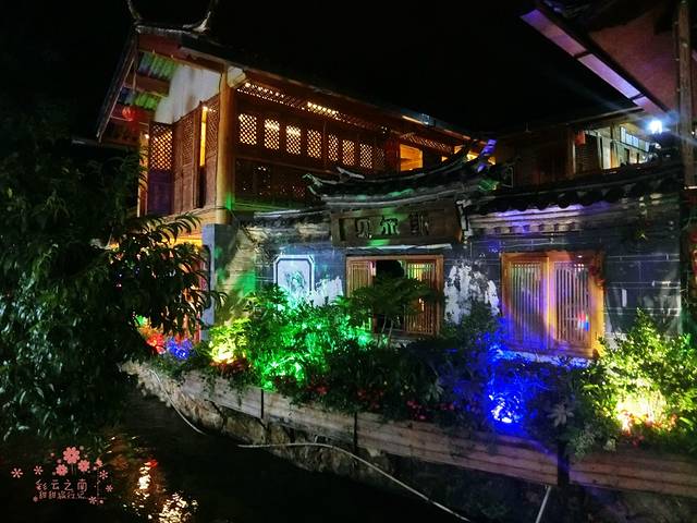 入夜了,古城街上灯火通明,石板路泛着幽幽的光,小溪灯影下盈盈流淌,静止的画面以外,是某家酒吧里抒情的歌声。