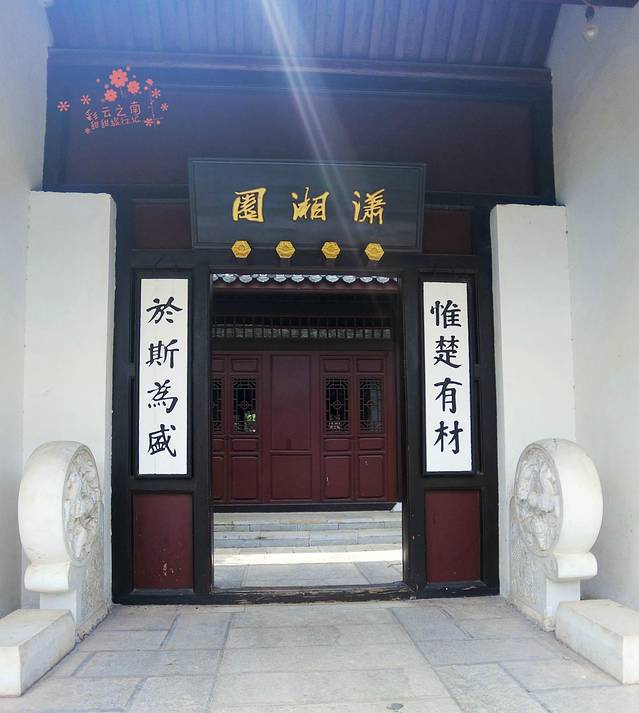 走进湖南省的室外展园潇湘园,迎面而来的是仿岳麓书院门庭而建的潇湘门,