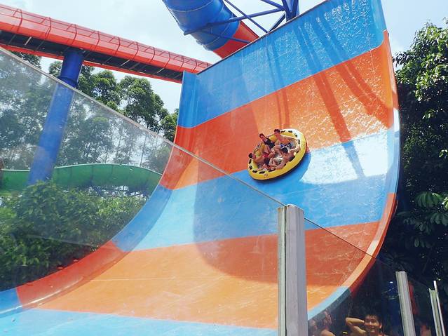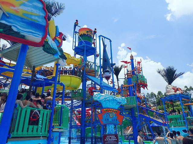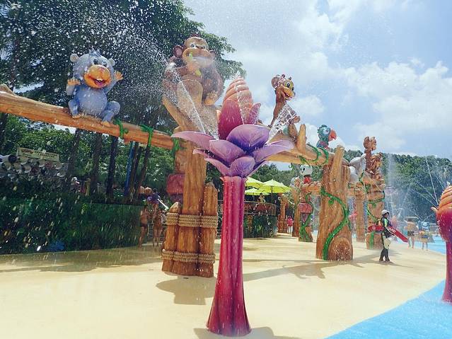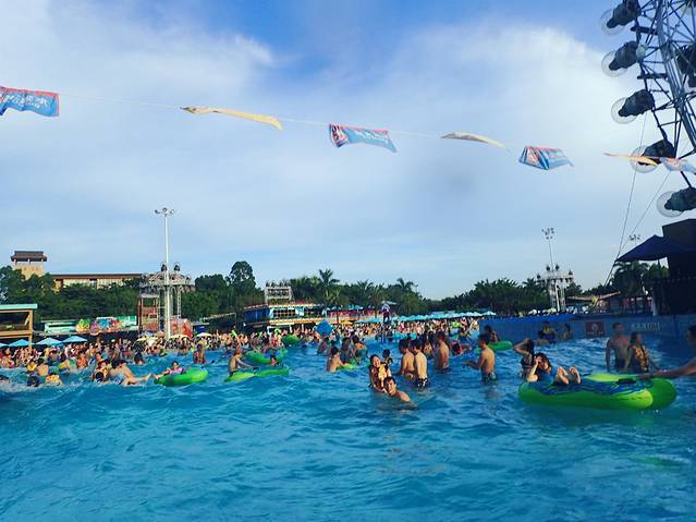 绕着整个游乐园一圈,可以在不同出入口进出,但是进漂流河要租游泳圈。