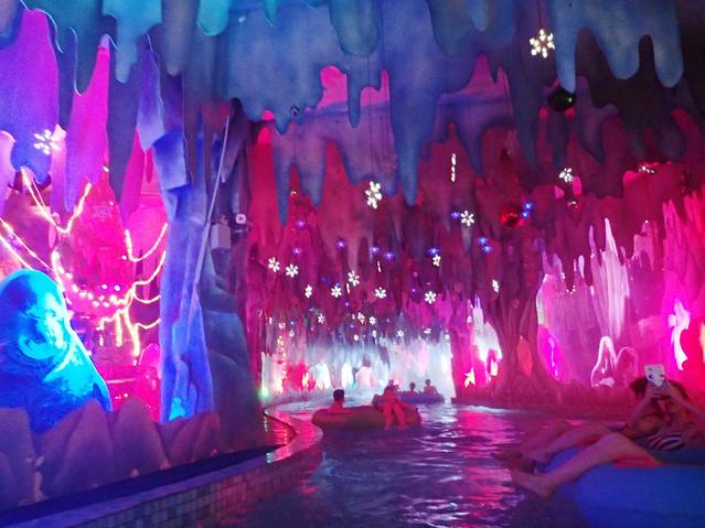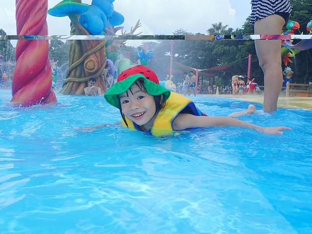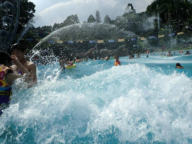 最喜欢造浪池开始造浪,浪还是蛮大的,有个小屁孩一有浪了就搂住我们游泳圈,笑死我了