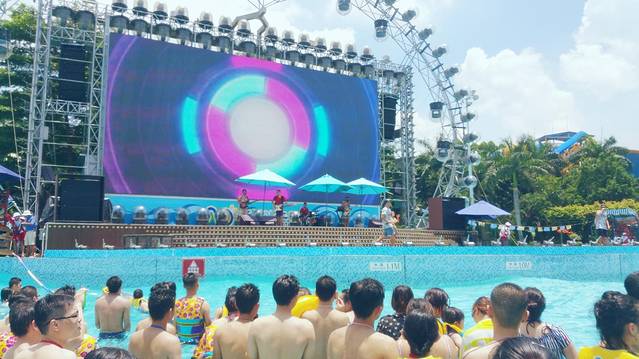 中午时刚好看到有歌手在唱歌,大屏幕前面很多人