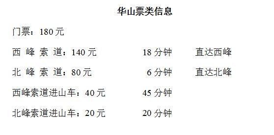 华山门票:180元/人