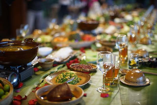 而这里特色的长桌宴,则是当地少数民族餐饮的集中表现。几十种菜把当地的美食展示极尽,让人眼花缭乱。