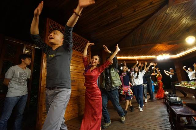 当然随同长桌宴一起的还有少数民族歌舞,姑娘、小伙的敬酒,如果没有酒量的人可要小心,真会醉啊..