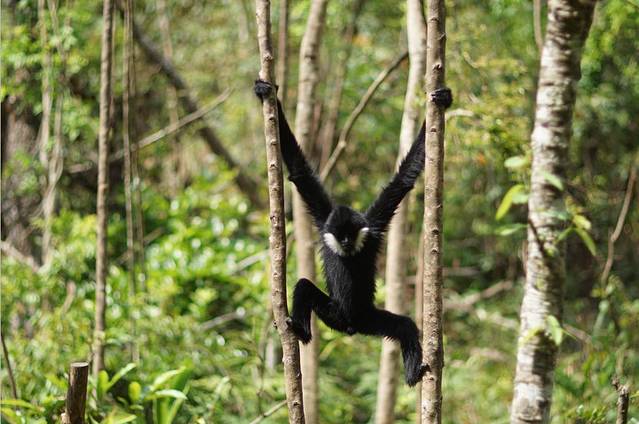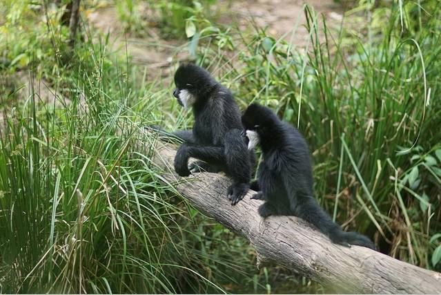 山中无老虎,猴子称大王,但有了长臂猿它们就规矩多了,乖乖的待在自己的领地了,这两个老兄在执勤吗?