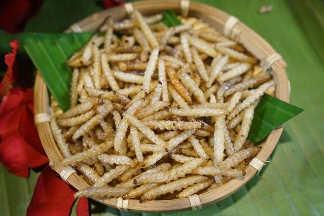 餐桌上一些你可能既没有见过也没有听说过的食品,在你的惊叫中长知识。这盘虫虫可是高蛋白食品啊,你敢吃吗?