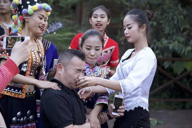 2016年4月20日是我农历3月14日的生日,就在这一天,哈尼人以最高的仪式热情的接待了我们。但我怎么也没有想到当所有人沉醉在美食和歌舞之中的时候,森林的灯光突然暗了下来,只有浓烈的篝火还在热情的燃烧着,就在所有人感到意外的时候,一阵“祝你生日快乐...”的欢快歌曲突然从哈尼人那动人的嗓音里冒出来,我一惊,难道是为我庆祝的吗?我不敢想,哈尼人怎么会知道今天是我的生日呢?这估计是哪位哈尼人的生日吧?但是哈尼人过生日吗?
