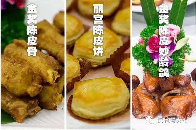 陈皮菜式当属丽宫的招牌之作吧。储存年份的长短,决定陈皮的等级和价值,时间越久越昂贵。金奖陈皮鸽,选用的是妙龄鸽,用十年陈皮提香,加以酱料秘制,鸽子带有淳厚的陈皮香味。皮脆、肉滑、骨软,吃完后齿颊留香,陈皮的甘香萦绕在口中,经久不散。金奖陈皮骨,陈皮腌制排骨之后,热油炸得表面香脆、金黄,肉嫩而松软,陈皮味入骨髓,口感酥脆。丽宫陈皮饼,陈皮和冬瓜蓉作馅料,搭配层次丰富的酥皮,吃到的每一口都是享受。