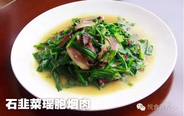 石韭菜,是乳源特有的食材。野生在石灰岩地区,人工采摘难度高,产量少,因此弥足珍贵。最地道的吃法是炒瑶家烟肉。碧绿的韭菜,晶莹透亮肉片点缀其间,口味清香,芳香四溢。