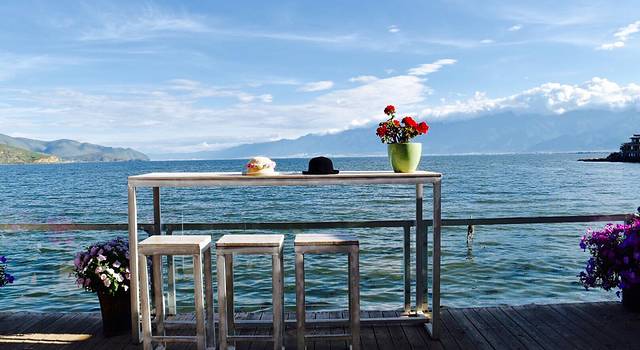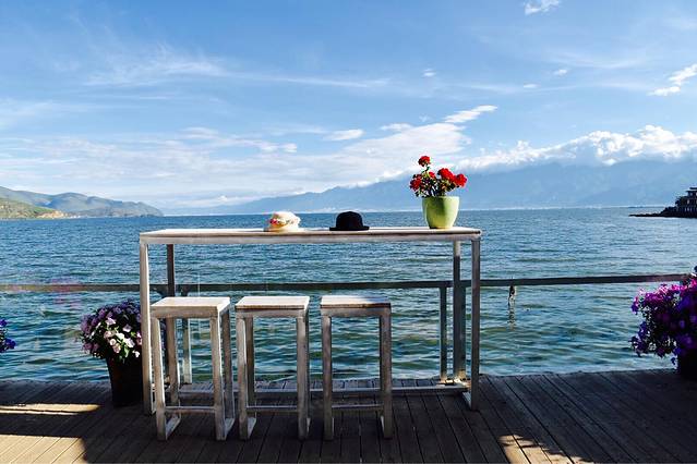 双廊镇的住宿相对小资,一个美丽的公共区域非常重要,这次选择住在【大建旁村】,距离镇上繁华地段(南诏风情岛码头)大概1KM,不算特别近,附近餐饮店也非常多,而吸引我的主要也就是酒店的风景了。