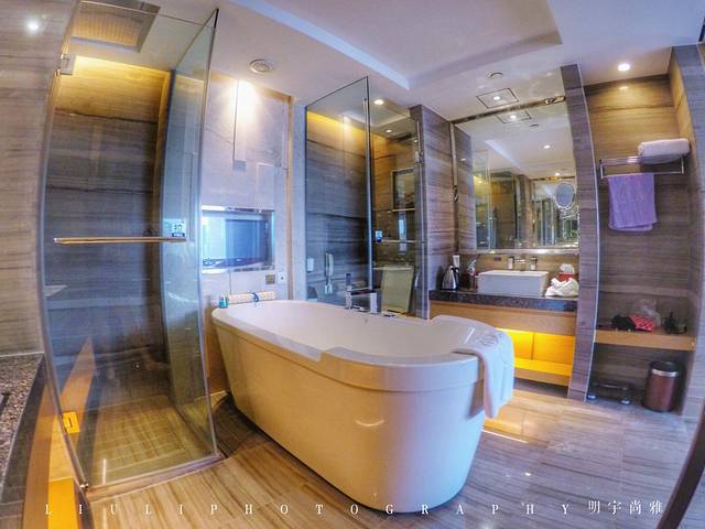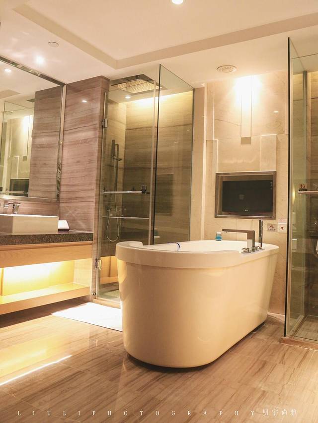 想感受泡着浴缸看夜景的奢华之旅吗,这里还有1 套拥有无敌江景,面积160平米的豪华套房,房间设有独立的开放式厨房、餐厅、客厅、书房、卧室、卫生间、衣帽间。55寸液晶电视可接收多个国内外卫星电视频道,Bose®环绕音响系统,24小时管家服务,胶囊咖啡机,欧舒丹洗浴用品,干蒸房,配备多媒体设备的全大理石感应式按摩浴缸,房间以高级工艺美术大师作品做装饰,享受行政楼层礼遇。