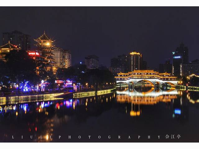 晚上,漫步在锦江边,散散步,聊聊天,不知不觉就走到了九眼桥的合江亭。
