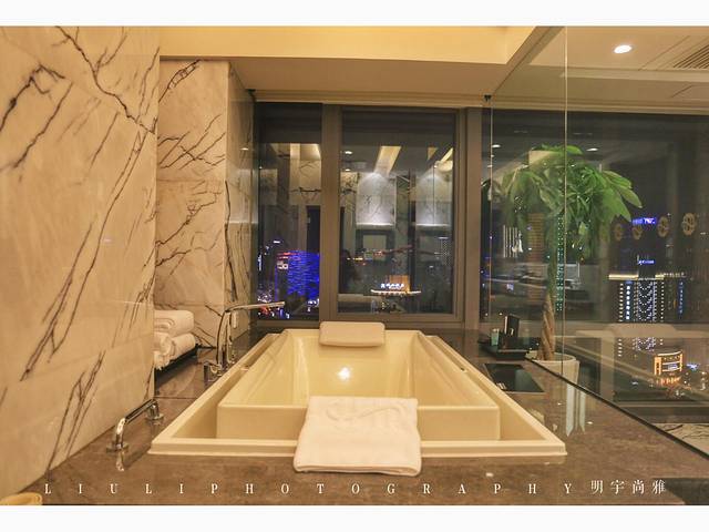 夜幕降临,华灯初上,可以一边泡澡,一边欣赏窗外的夜景。