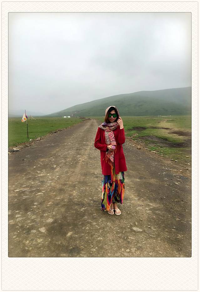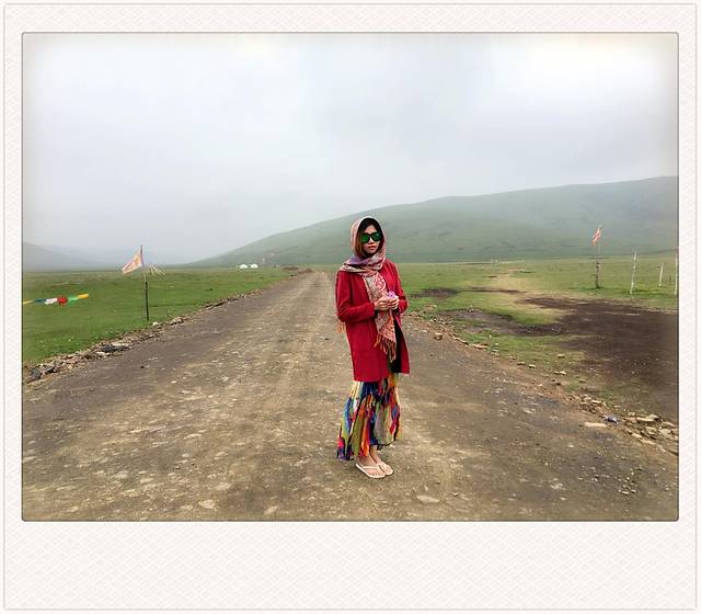 草原混搭风~天气不似预测。我预算中的天气中午是火辣辣的,我可以穿着波西米亚裙在草地上拍照。谁知道那天阴天,还下起了毛毛雨,气温只有十几度,非常冷,所以能把穿的都往身上盖…