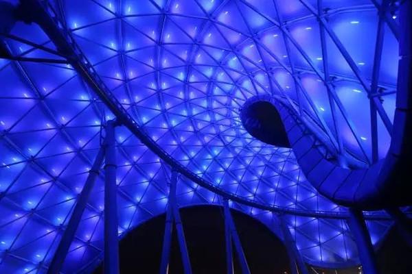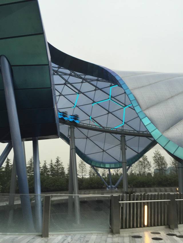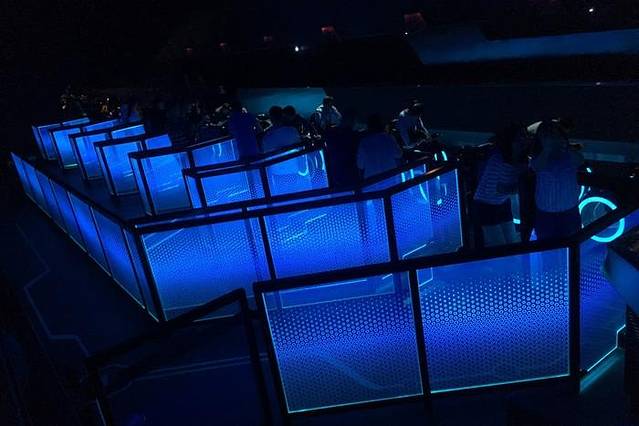 进入排队等候通道里面的设计更是未来感十足,黑暗中蓝色的灯光仿佛把自己带到了另一个奇幻的世界,在排队等候的过程中,屏幕上会有介绍这个项目的信息,根据迪士尼的电影《创:战纪(Tron:Legacy)》改编,大致是要跟别的战队进行速度上的对抗。在战车启动后一直是处于高速运转状态,不愧是堪称“迪士尼史上最快的过山车”,感觉白日和黑夜就是一晃穿梭而过,速度加垂直降落的感觉是最惊险,刺激的,如果有机会觉得自己以后还会去体验一次的,因为真的是太过瘾了。但提醒过小的小朋友和年纪大的有高血压等症状的老年人还是不要去尝试了。