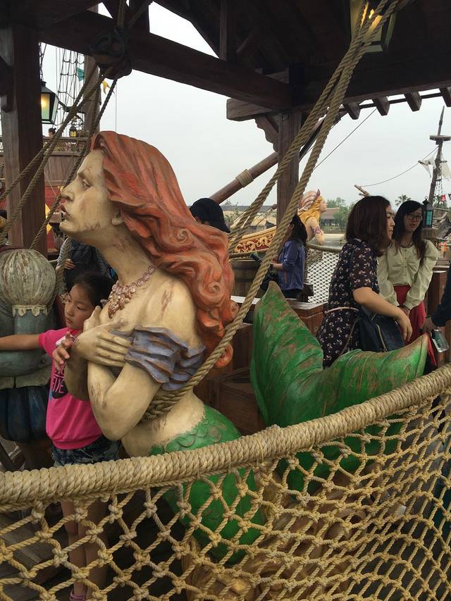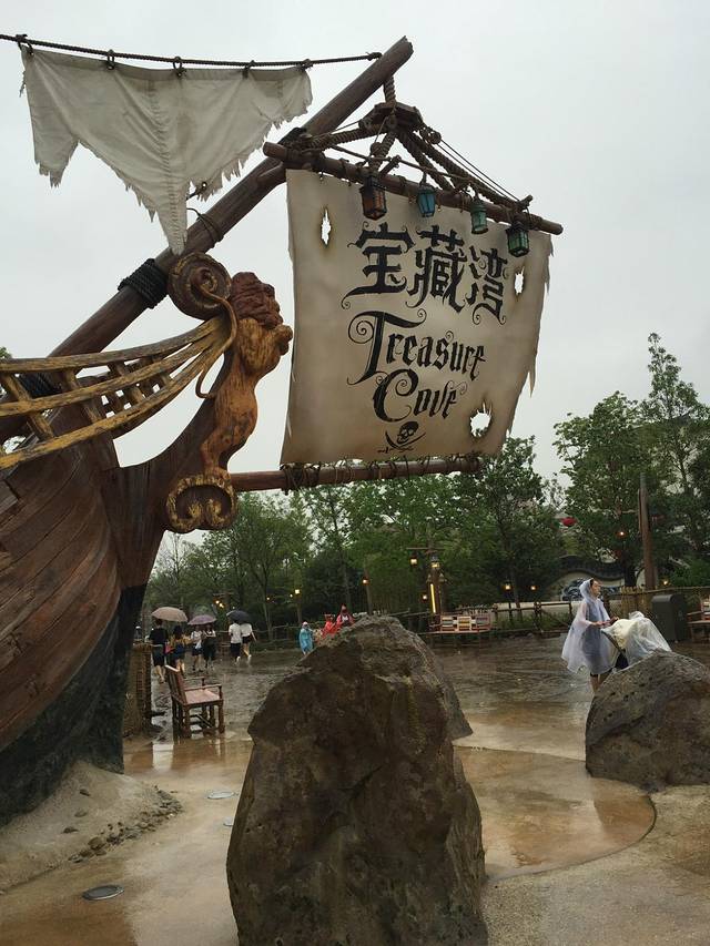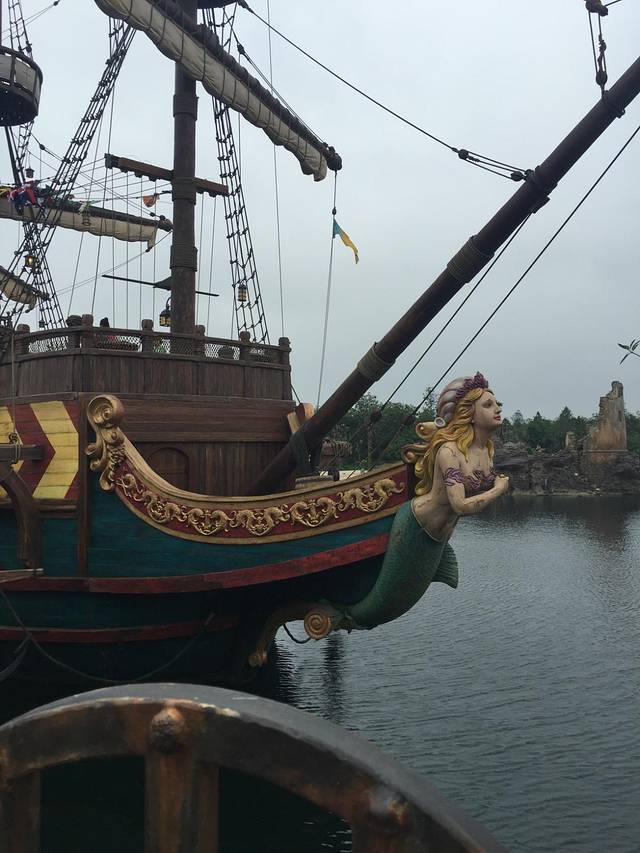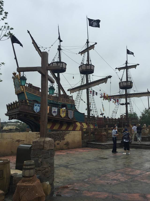 运气很好,到了游玩项目,只要排队十五分钟,我们一下子就可以坐船跟着杰克船长去探险了。