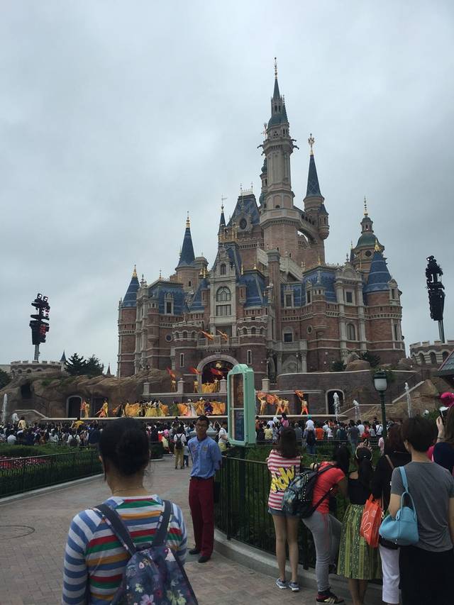 很幸运,三场演出都看到了,中午大约十二点多在城堡面对奇想花园这里有金色童话盛典,里面小美人鱼,阿拉丁茉莉公主等都会相继登场表演,看的人也比较多,如果要好一点的观看角度,建议提前到。