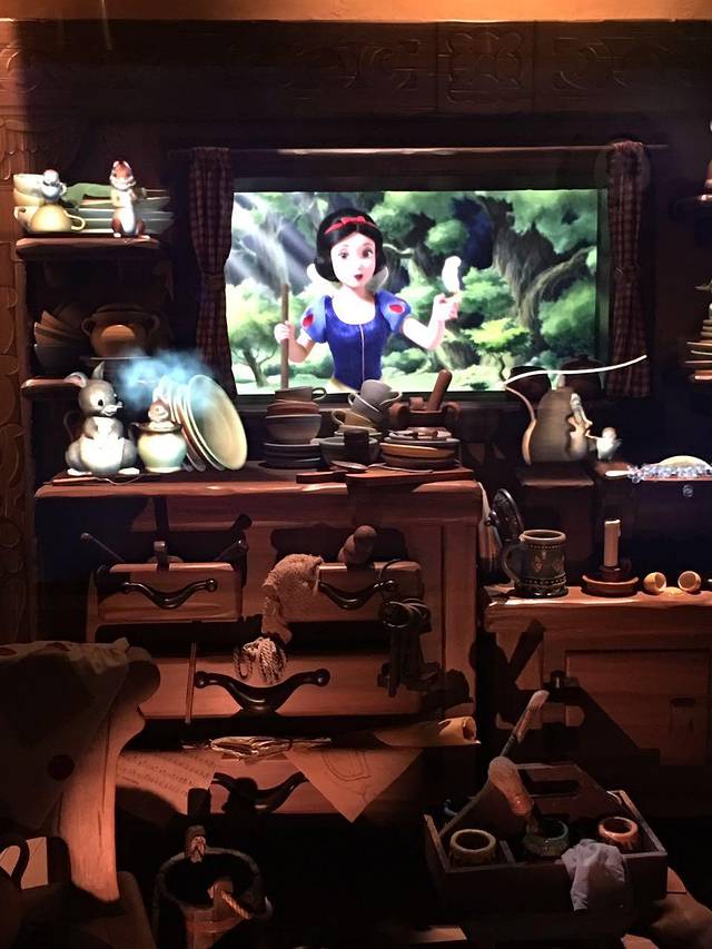 漫游童话时光内部场景,进入城堡,带你走进白雪公主的故事世界,可以和白雪公主和其他动物小伙伴互动,很可爱,当然也有女巫和魔镜,非常适合小朋友游玩。
