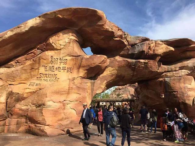 因为入园的时间晚了,一进门就直冲飞越地平线,可惜排队已经很长很长了,去取快速票也被告知已经没有了,所以果断放弃了这个项目,排队的话基本要3小时,多的要5个小时,虽然评价很高被誉为迪士尼最值得玩的项目之一,但为了节约时间果断放弃了,留点小遗憾给下次吧。