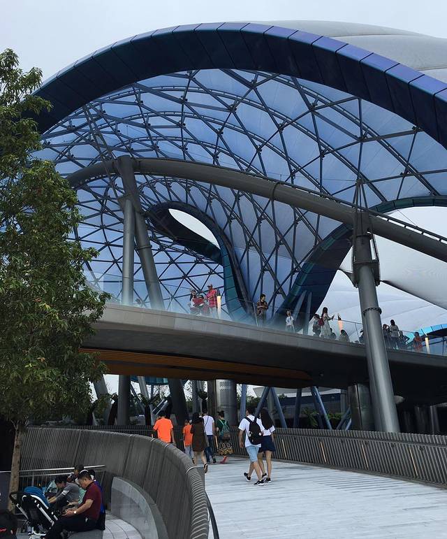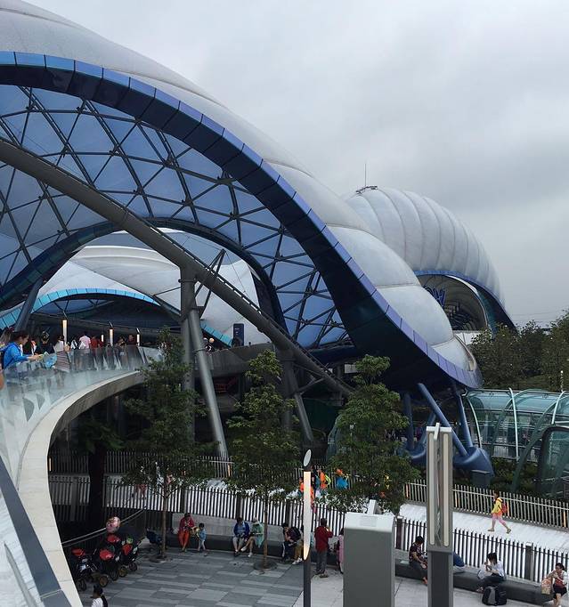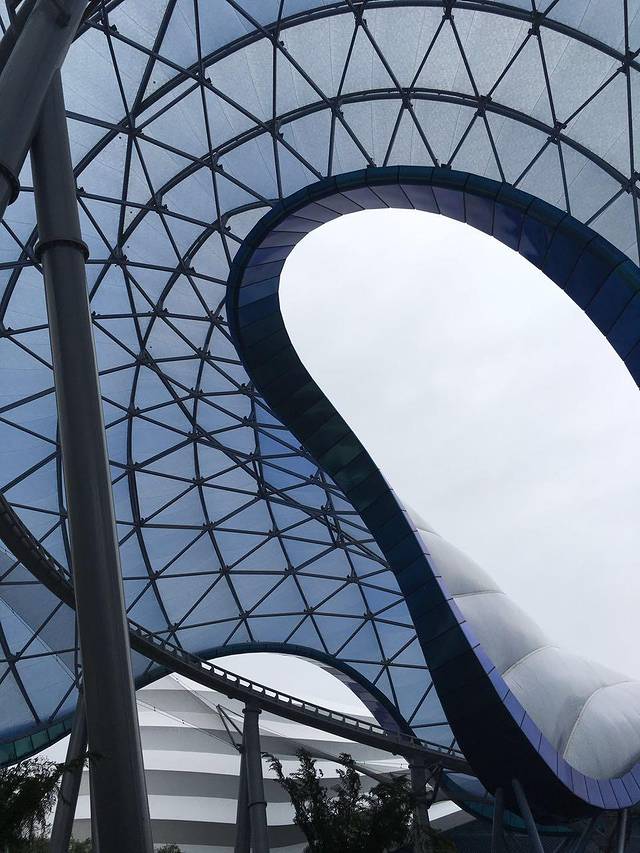 接下来,我们来到了整个园区最富有现代感气息的——明日世界。那里有我最想挑战的创极速光轮(简称TRON),远远的就被银白色的山丘似起伏的穹顶所吸引,慢慢越走越近,只见时不时的一辆辆高速行进的战车飞啸而过。