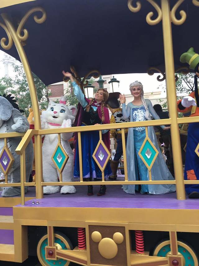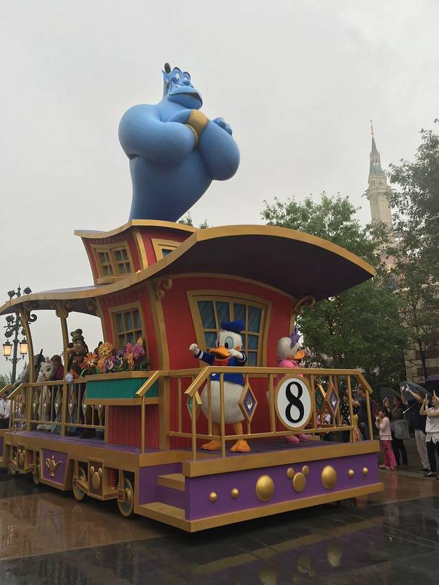 下午的花车巡游,因为下雨由童话专线改为米奇的朋友们系列,大概2、3辆花车,从明日世界面前出发,终点是在漫月轩,宝藏湾附近,距离还是比较长的,各种卡通形象都会相继登场,米奇好热情,不停地向我招手~好开心