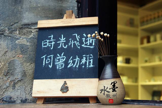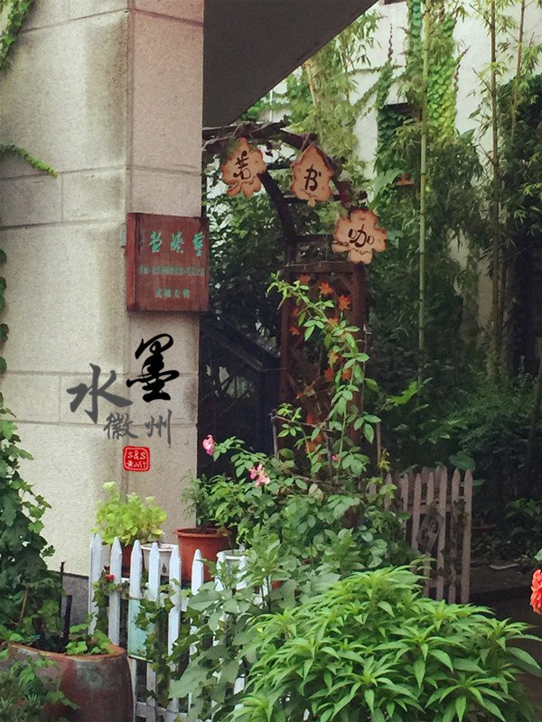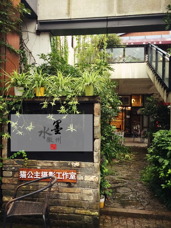 除了从雨中的“黎阳老街”牌匾读出了水墨风,整个街区的风格跟其他地方的创意园没有差,咖啡厅、书店、花房、餐馆、创意工作室。满屏的花花草草让我们忘了欣赏徽派建筑原本的模样。