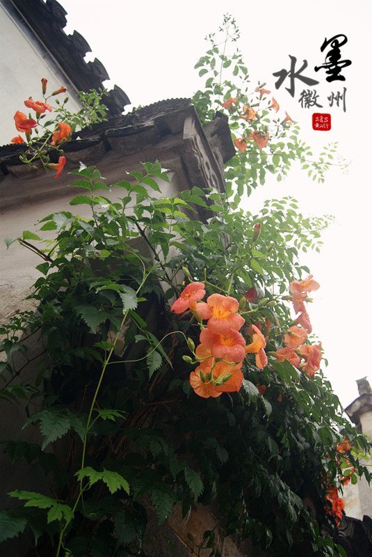 【宏村】转角一株出了墙的花,点亮了灰沉沉的天气。我也不明白自己为什么总是很容易就被小物惊艳到。