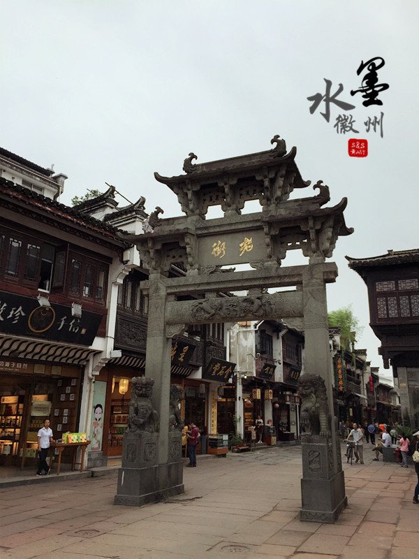【老街】:老街建筑保持着传统的徽州古建筑风格,沿街共有280家店铺,大都为二层,属典型的下店上房,前店后坊形制建筑体量有10多万平方米。--摘自百度