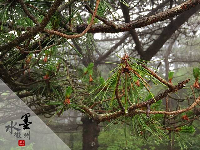 松针上挂满了雨滴,我想这是我们在黄山上拍到的最清晰的照片了。