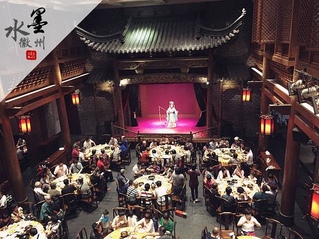 卸下行李,我们领了赠票来香茗大剧院观看《徽韵》啦,其实就在酒店里面。看着收银窗口写着160元至380元/张几个档次的票价。入场后因为剧院观众未满,工作人员示意不用按座位随便坐,票价简直就是浮云。