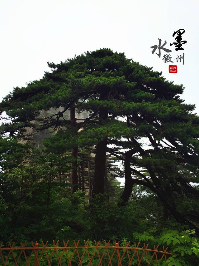 【竖琴松】:黄山十大名松之一,位于卧云峰侧北坡的竖琴松以形取胜,它主干挺直,顶状如伞,形似竖琴,又如古时官署中的辕门,所以,又称“辕门松”。--摘自百度