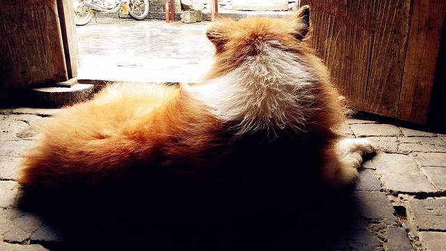 看到幸福里客栈,不得不承认,首先是狗狗吸引住的,它极为安静的趴在客栈门口,看着来往的行人。