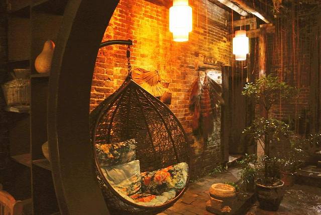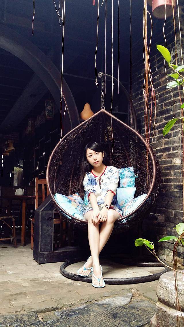 由于天色已晚,也不便逛太远,所以就回客栈了。很喜欢这把吊椅,喜欢这造型,坐着也舒服,舒服到都快在椅子上睡着了。