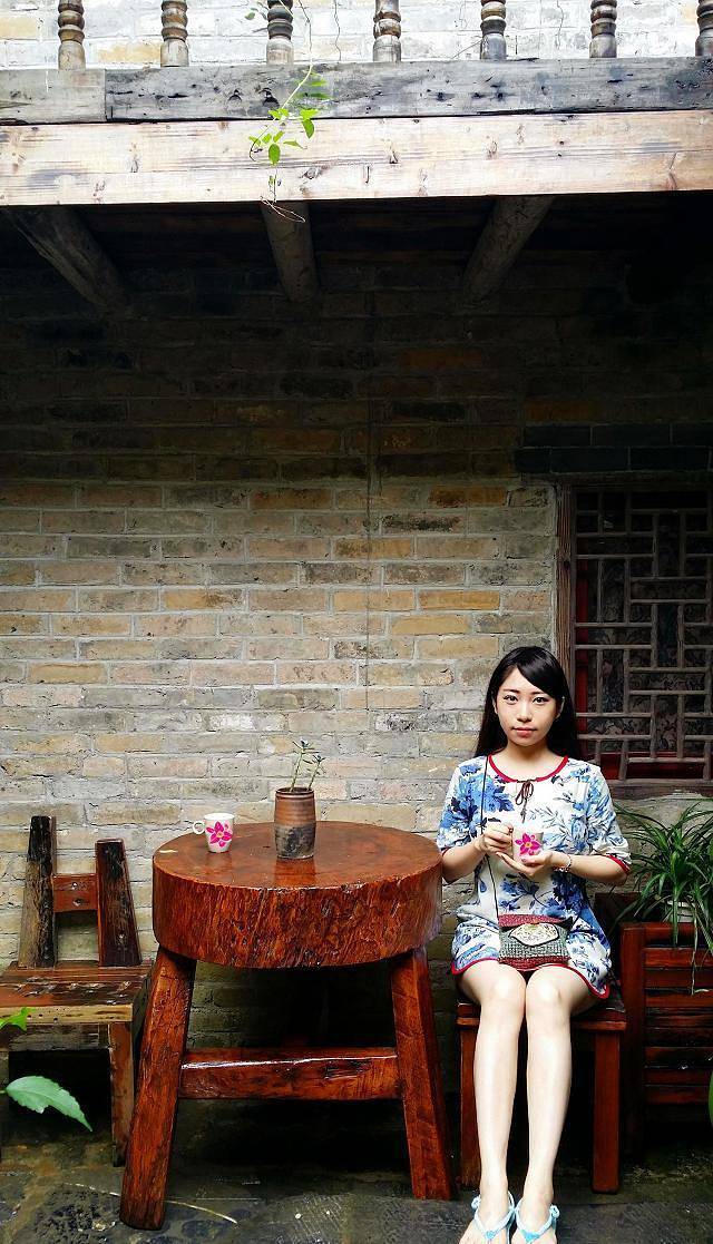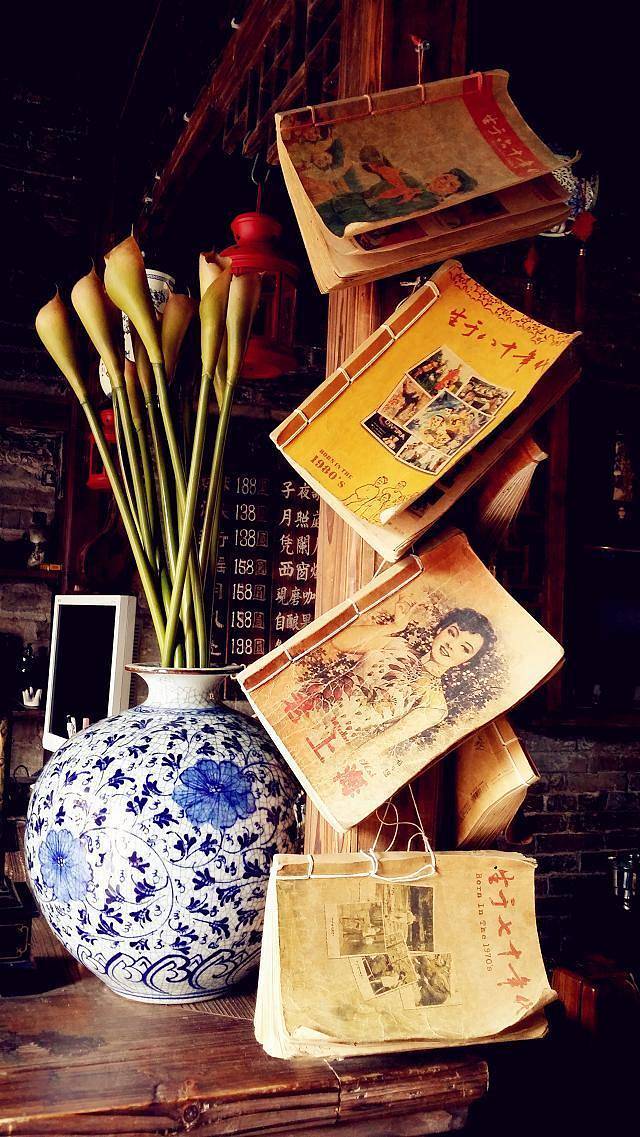 就顾着快些吃,然后好好逛古镇,所以没有拍菜品出来。等待上菜的时间,和老板闲聊,老板说客栈里的装修布置,挂着的字和画都是他弟弟弄的,他弟弟是老师,现在放假了,经常会组织学生一起骑车在古镇里写生。