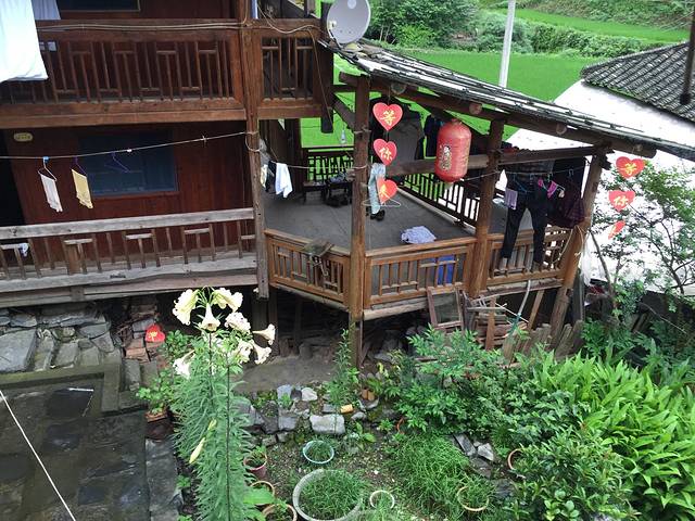 换上随身带来的衣服,一双凉拖鞋,我们扑哒扑哒的在客栈院子里头的青石板上转悠。一会儿上另一头的吊脚楼看看,一会儿又去溪边看看小鱼仔们……