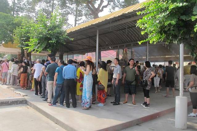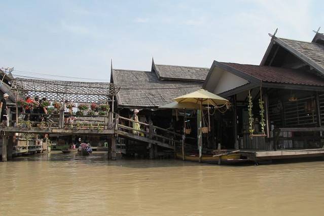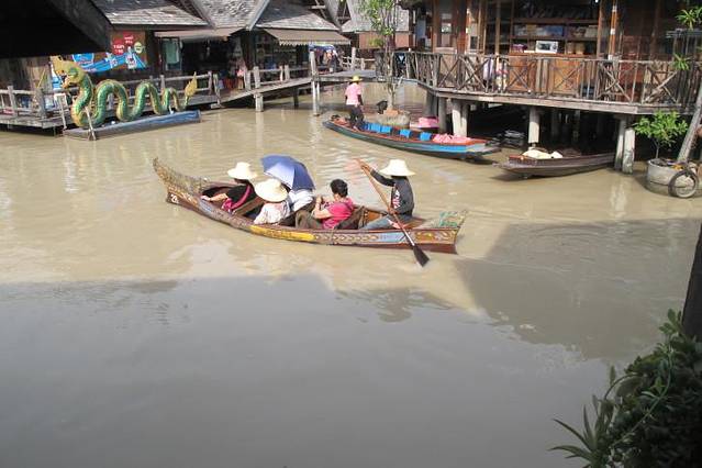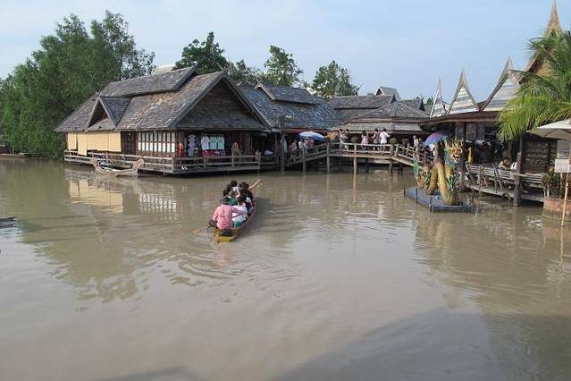 游客大包小包拎着,满足的笑着,导游也摸着钱包,满意的笑着,皆大欢喜,乐也融融。饭毕,下一站芭提雅的四合镇水乡。