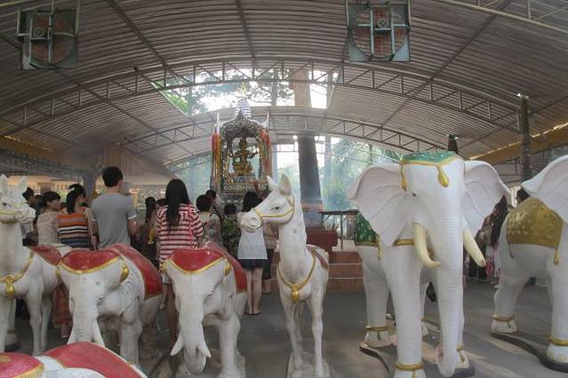 芭提雅金佛寺参拜四面佛,这个不是位于曼谷的街中央的那座名气斐然的四面佛,而是位于芭提雅郊外的一个寺庙,其功能之一是以寺庙形式接待游客的旅游景点。