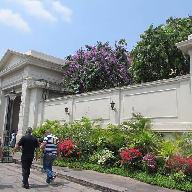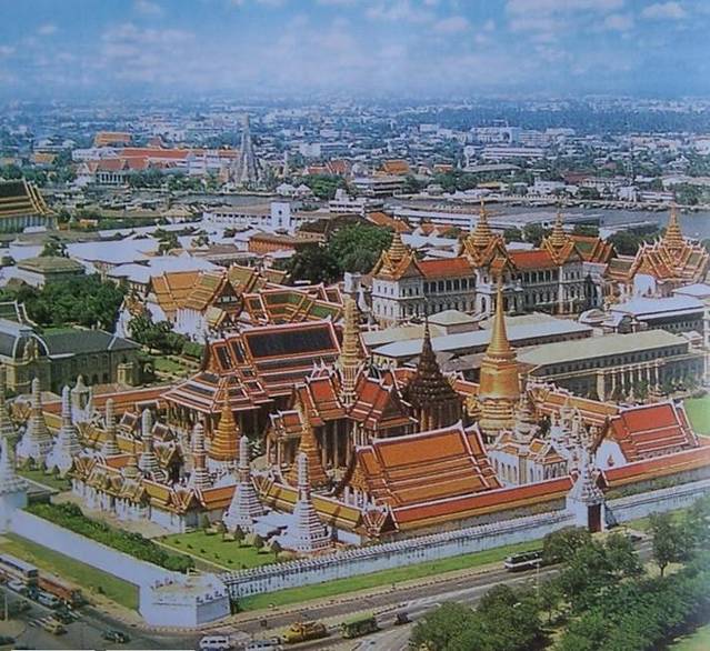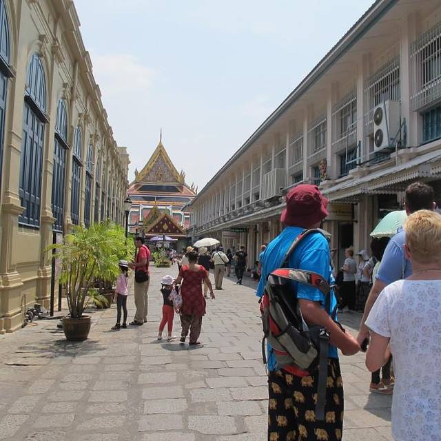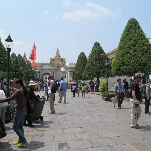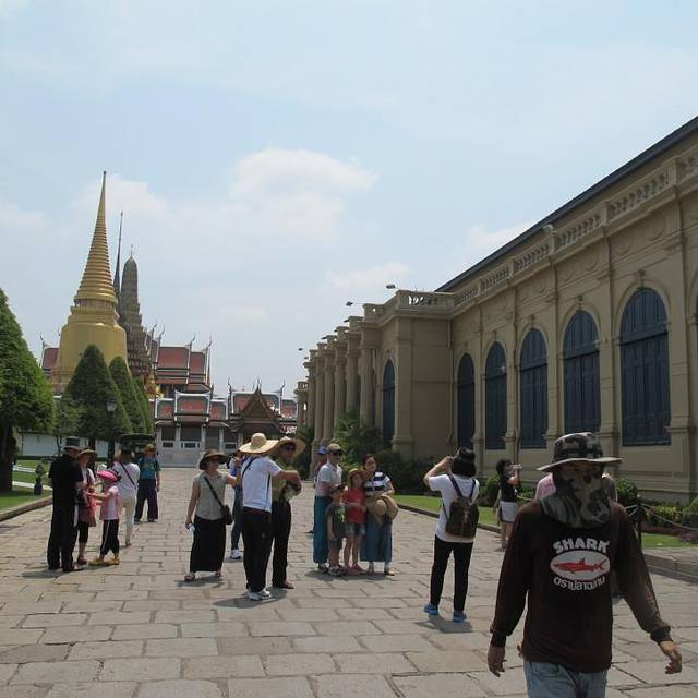 大皇宫(The Grand Palace),是泰王室规模最大的宫殿建筑群,汇集了泰国建筑、装饰、雕刻、绘画等民族特色的精华。它位于湄南河东岸,始建于拉玛一世时期的1782年,经历代君王不断扩建,终于建成现在这座保存最完美、规模最大、最有民族特色的王宫。大皇宫曾一直是暹罗王国的皇室居所,曼谷王朝从拉玛一世到拉玛八世,均居于大皇宫内,直到1946年拉玛八世在宫中被刺之后,拉玛九世便搬至大皇宫东面新建的Chitralada宫居住。现在,大皇宫除了用于举行加冕典礼、宫廷庆祝等仪式和活动外,平时对外开放,成为泰国著名的游览场所。