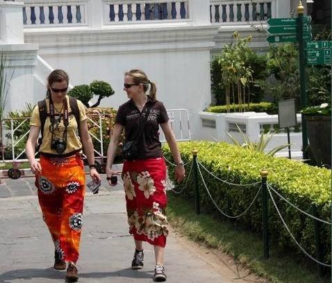 为了表示对于佛祖的恭敬,要求每一位进入大皇宫的游客无论男女必须遵守着装要求