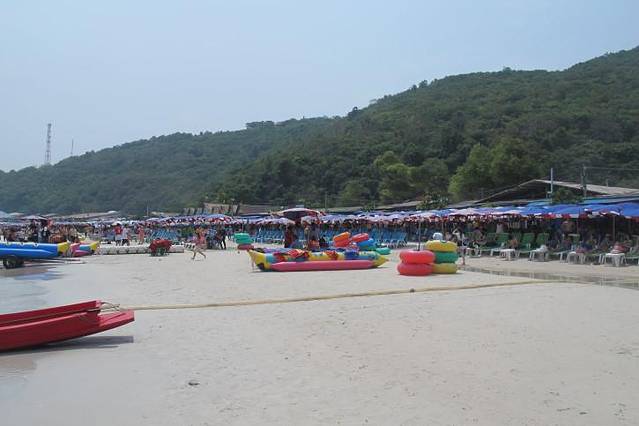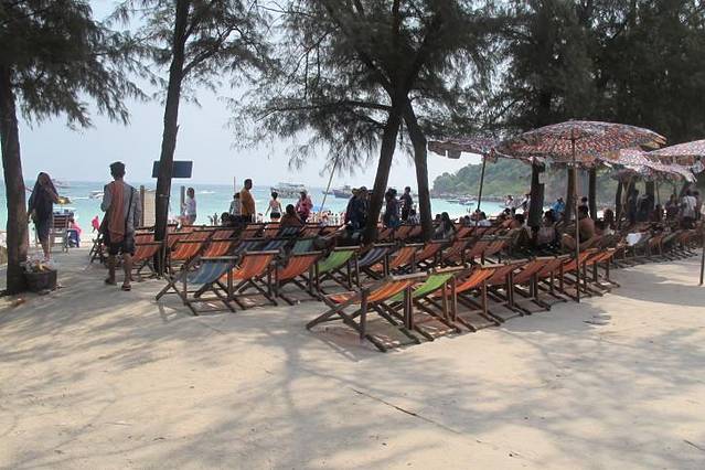 岛上的游乐设施有价,躺椅免费,国人不喜阳光浴,树荫下看看海,吹吹风,还是挺惬意的